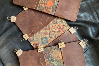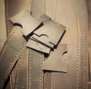 La réponse est simple, ça signifie que TOUT est fait à la main. De la découpe, à la teinte, au perçage de trous, à la couture etc... La seule étape (l’étape finale) pendant laquelle Chantel utilise une machine est celle de la gravure de notre logo.